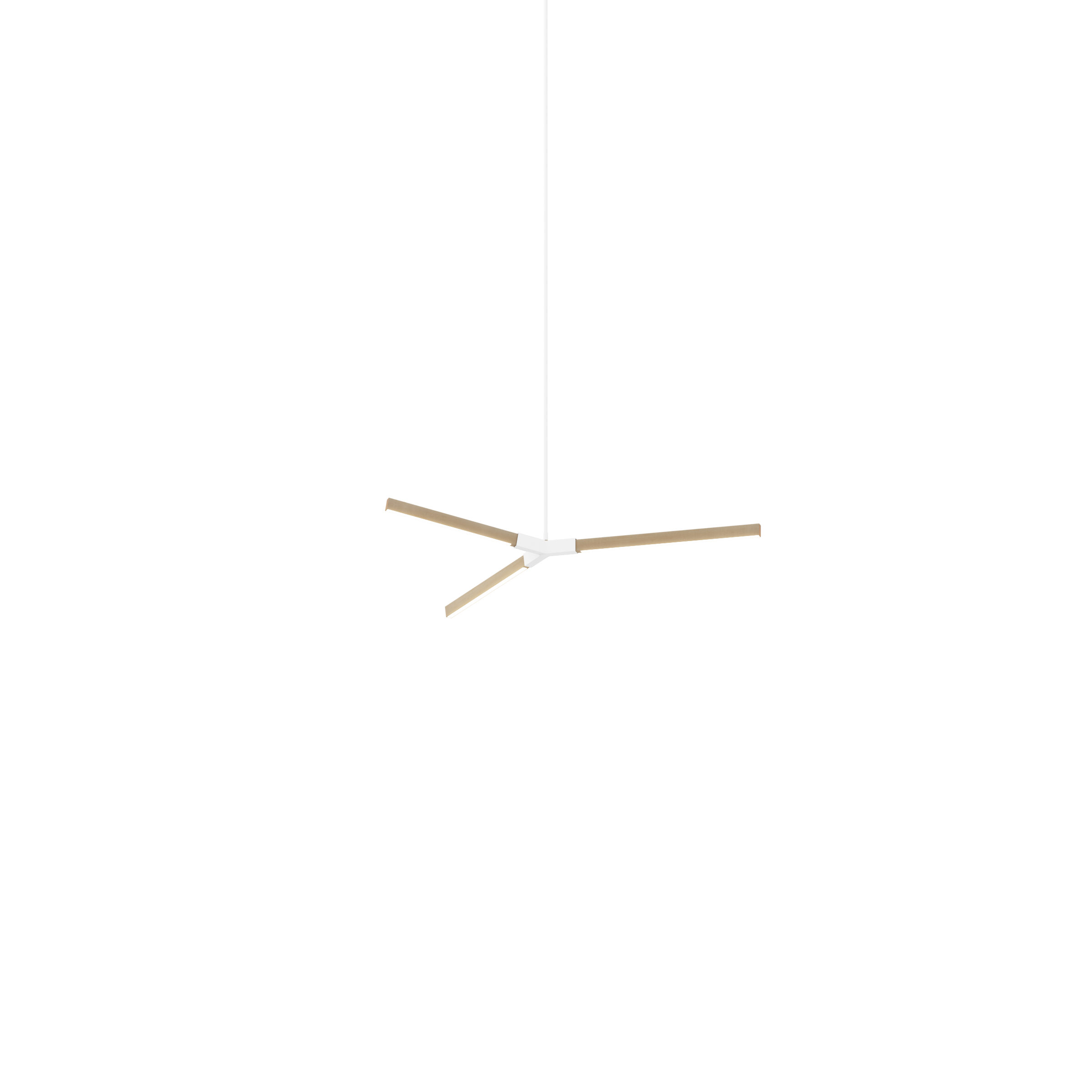 BOUGH is comprised of 3 solid wood sticks of varying lengths held in place by a central steel socket and stem. It casts warm light up or down, and is commonly used above a circular table in clusters for both residential and commercial spaces. BOUGH explores the space between our minimal aesthetic and expressive pieces. Span ranges from 3-5ft. Ships flat-packed.