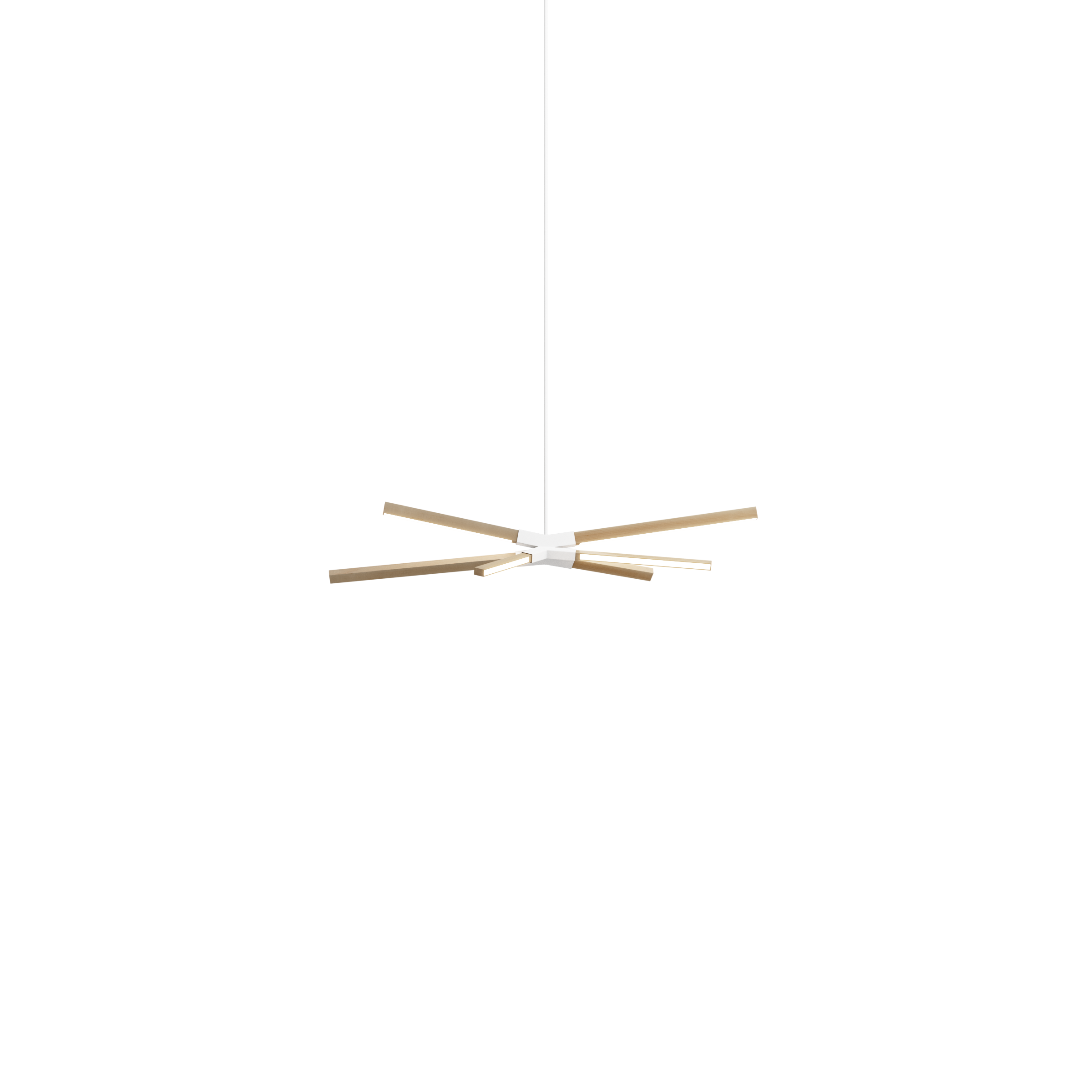 SKYBANG is comprised of 6 solid wood sticks of varying lengths held in place by a central steel socket and stem. It casts warm light in all directions, conjures the dynamic shape of abstract trees, and is commonly used alone or in clusters for both residential and commercial spaces. Span ranges from 5-10ft. Ships flat-packed.