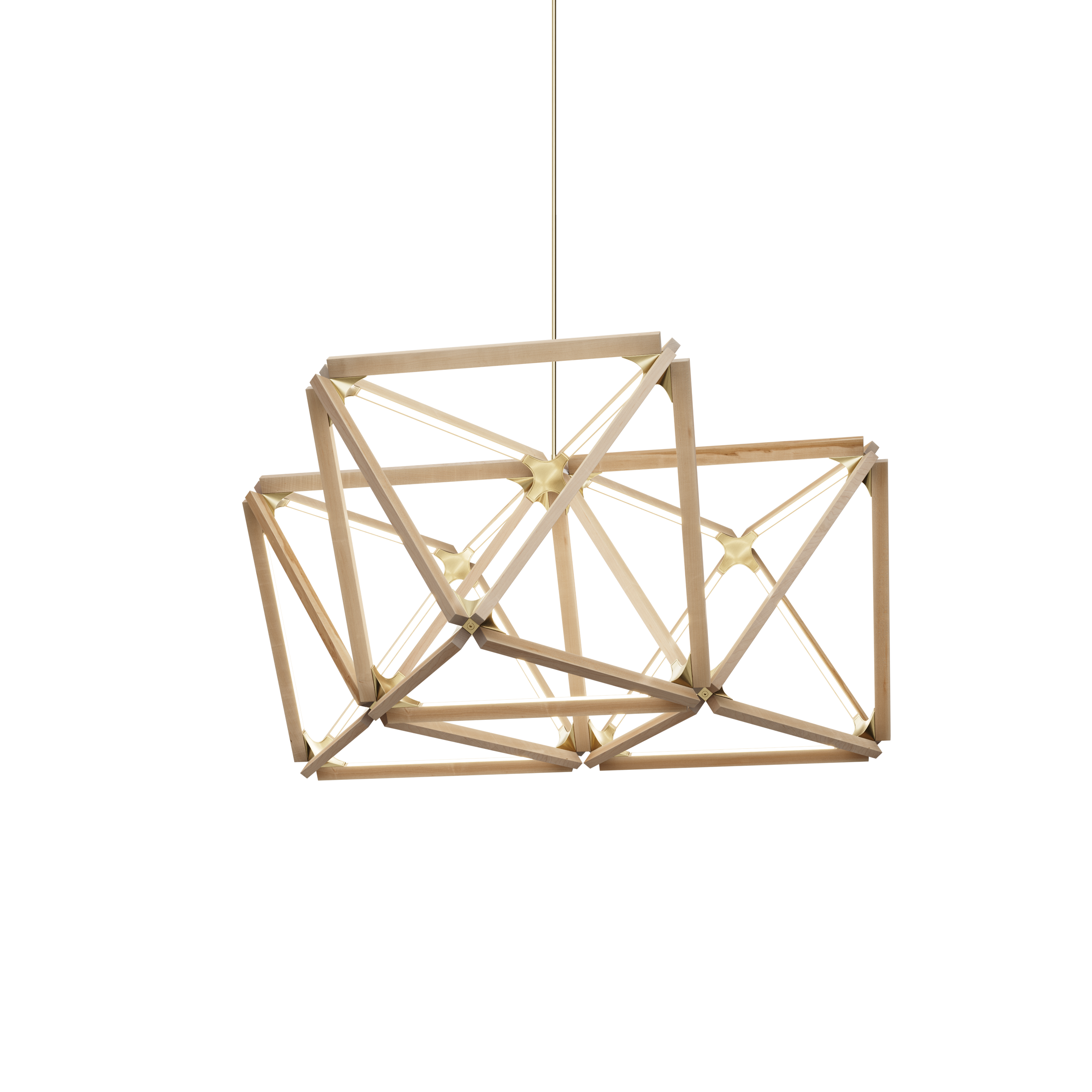 TRIPLE X is comprised of 24 solid wood sticks held in place by sculptural brass connectors and a stem.